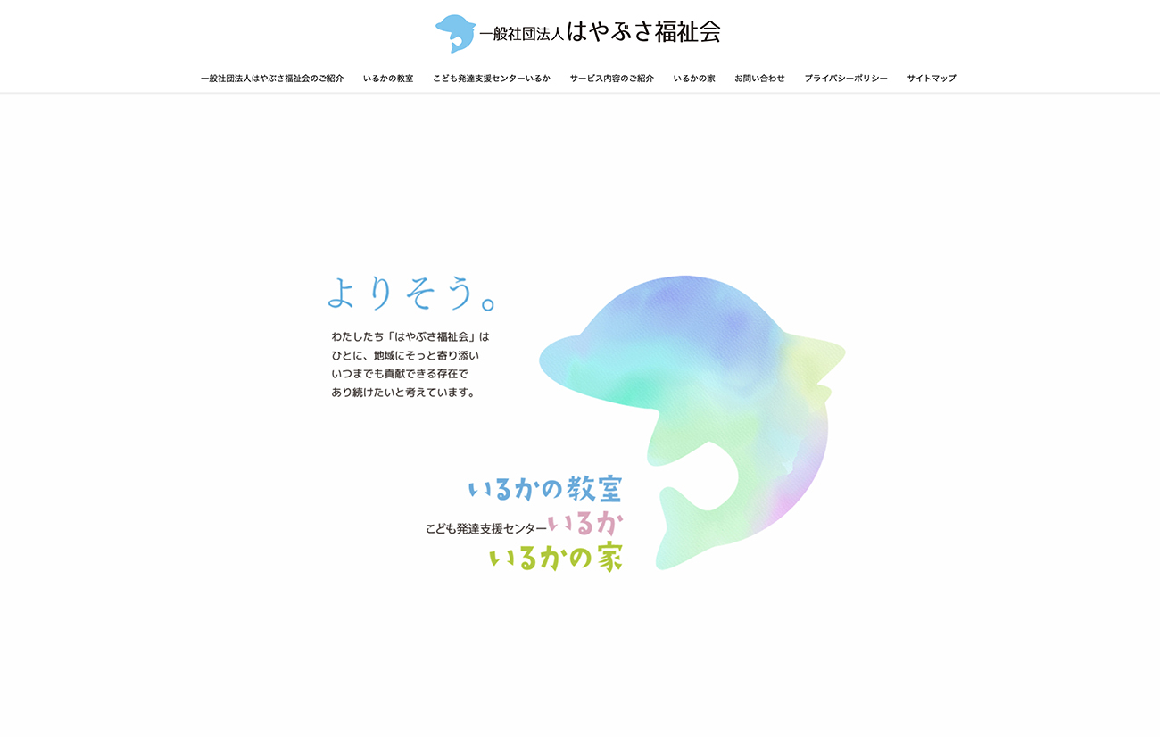 枕崎市にある、一般社団法人はやぶさ福祉会「いるかの教室」「こども発達支援センターいるか」のサイトを制作させていただきました。