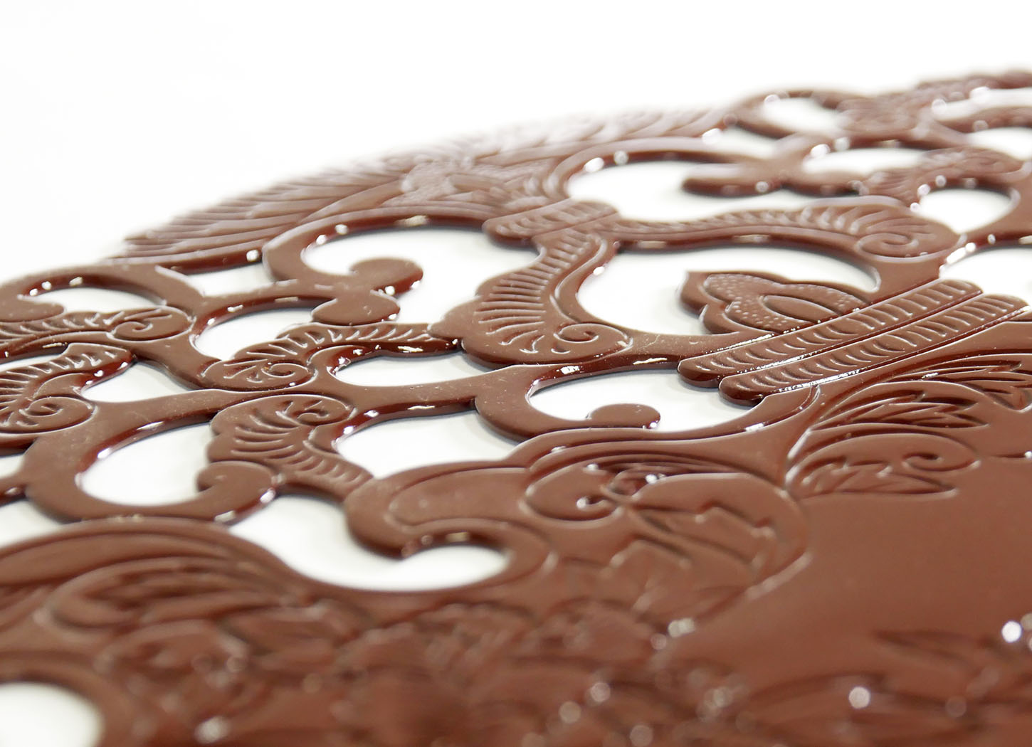銅、真鍮素材をプレス機器により(型抜き、模様打ち)それぞれ複雑な工程があり、化学研磨から金メッキ、黒メッキ加工まで自社による一貫生産にこだわり、製造されています。