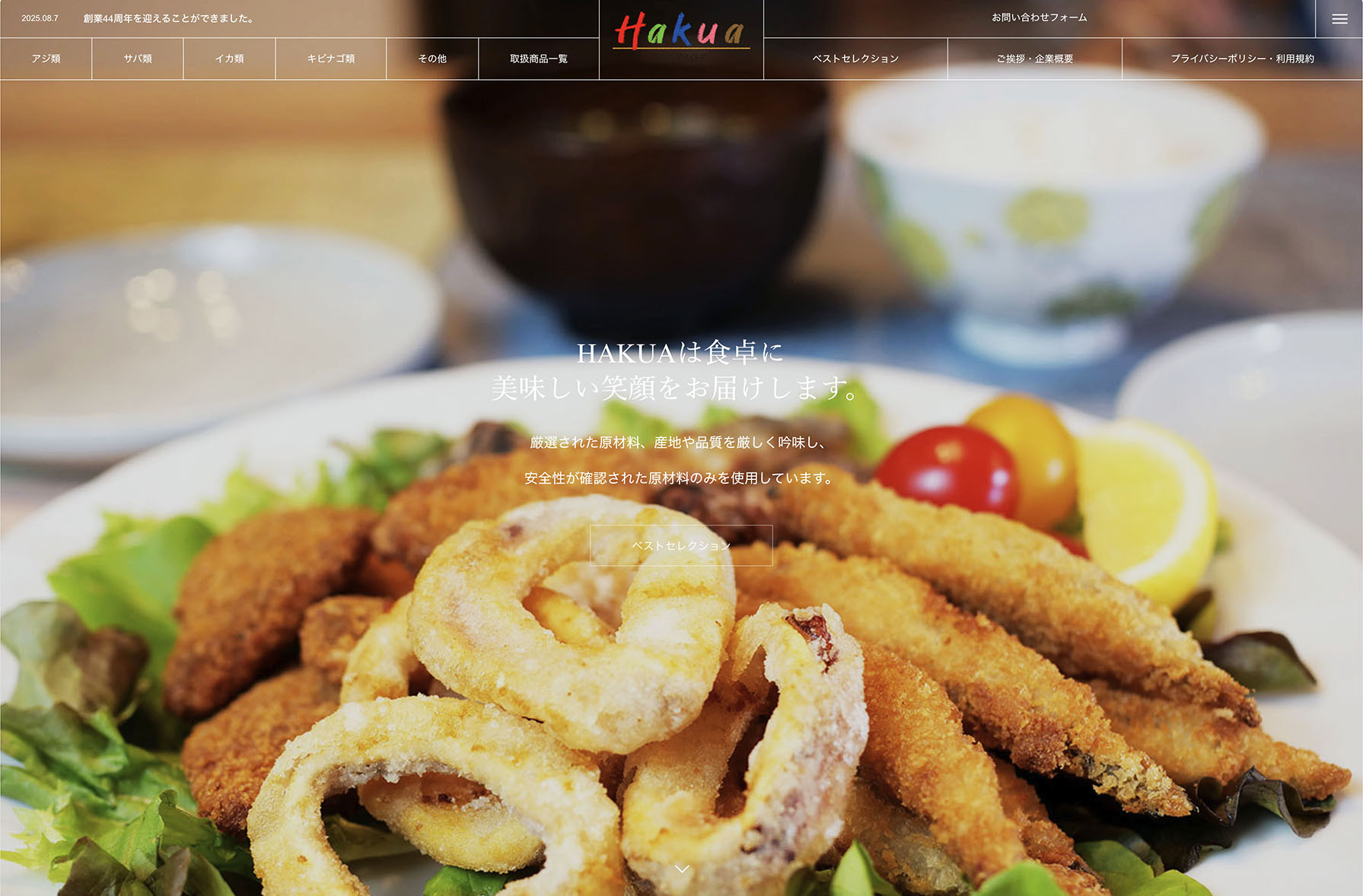 薩摩川内市にある、水産加工品、冷凍食品の製造会社「ハクア食品株式会社」様のホームページリニューアル作業(サイトサーバー・ドメイン新設、デザイン、撮影、コピー全般)を行い、公開しました。